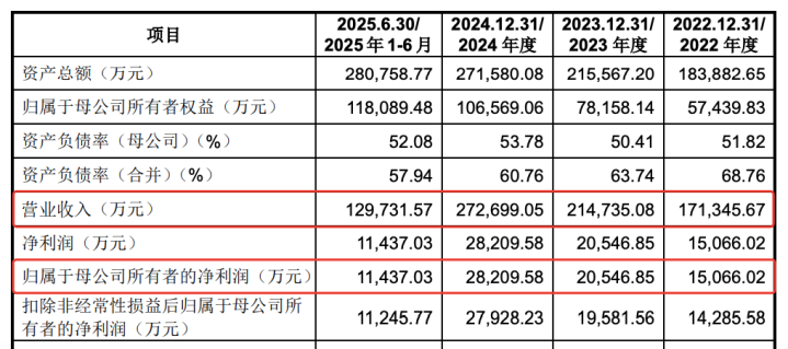 2022年、2023年、2024年及2025年上半年,大明电子实现的营业收入分别为17.13亿元、21.47亿元、27.27亿元和12.97亿元;其实现的归母净利润分别为1.51亿元、2.05亿元、2.82亿元和1.14亿元。